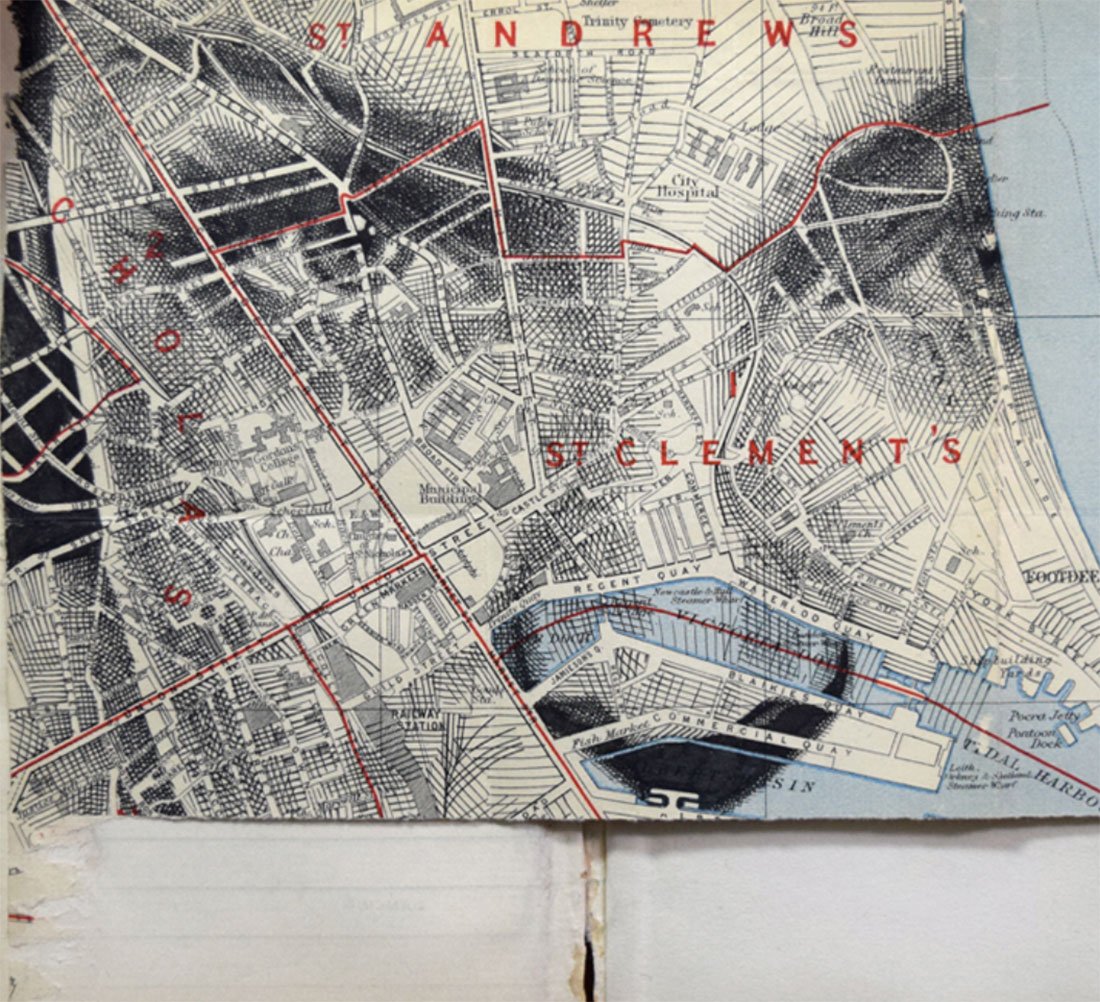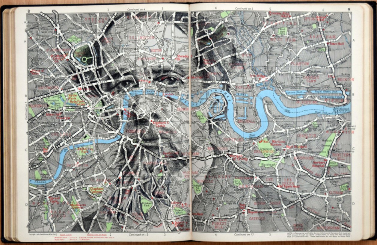 Cada cop que preparem un viatge o volem anar a algun lloc, però el camí per arribar ens és del tot desconegut, fem ús d’algun mapa, sigui de carreteres o simplement topogràfic. Doncs això és el que fa l’ED FAIRBURN, fer servir mapes, i no precisament per anar cap destí en concret sinó que els utilitza per a les seves brillants obres d’art.